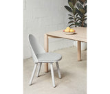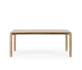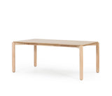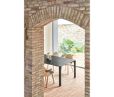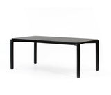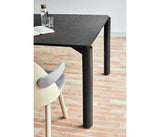 La mesa rectangular Atlas presenta 4 patas con un ligero desfase y rematadas con un pie redondeado, las cuales dan soporte al tablero rectangular.