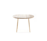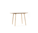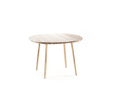 La mesa está disponible totalmente barnizada (en la versión de fresno natural) o con una pátina de diferentes vibrantes colores a elegir.