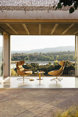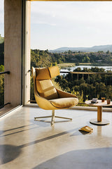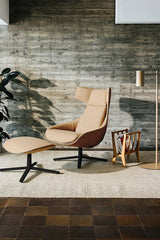 El sillón Kua con base 4R tiene una base giratoria con sistema de retorno de aluminio de 4 radios, pulida o lacada en cualquiera de nuestros colores, y su carcasa está totalmente tapizada. Dispone de un sistema basculante que permite su reclinado y su bloqueo en la posición delantera. Este cómodo y elegante sillón es idóneo para un rincón de lectura o descanso en hogar, o como parte de salas de espera o recepciones en hospitality y zonas de trabajo. Se puede combinar con la otomana de su misma colección para un mayor confort.