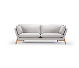 Un moderno sofá de estilo escandinavo y mid century modern con patas icónicas en roble lacado que un diseño original, único y muy elegante.