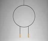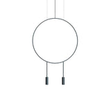 Lámpara de suspensión con cuerpo circular y dos diámetros diferentes.Cabezales cilíndricos de aluminio y difusores de acrílico (PMMA). Altura ajustable. Kit opcional de conversión de lentes ópticas acrílicas de ángulo 50º y panel decorativo que absorbe el sonido.