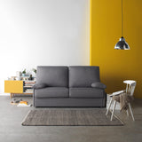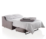 El sofá dispone de una apertura de rotación que permite que salga una cama sin tener que quitar los cojines de asiento o respaldo. El asiento y respaldo son desenfundables.