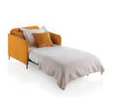 Este sofá cama cuenta con un sistema de apertura telescópica desde la propia piecera del sofá. El asiento y respaldo constituyen el colchón de tres cortes de la cama. Colchón enfundado en una sola pieza con cremallera.
