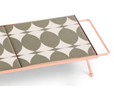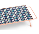 Pueden usarse como mesas auxiliares, pedestales, bandejas, fuentes de mesa y mucho más. Realizadas con azulejos de dibujos geométricos de estilo años setenta más una ligera y grácil estructura de cobre o latón, las piezas de Mix&Match diseñadas por la brasieña Flavia del Pra son elementos extraordinariamente multifuncionales.