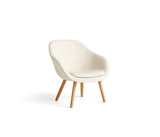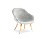 El sillón About A Lounge Chair tiene un cuerpo compacto con apoyabrazos combinados con patas redondas de madera maciza. La carcasa es de espuma de poliuretano moldeada suave con reposabrazos y puede ser tapizada en una gran variedad de tejidos. Además, tiene un cojín de asiento opcional tapizado en espuma de poliuretano moldeada.