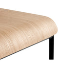 Utilizando tubos de acero y aluminio fundido a presión que se conectan en un triángulo tridimensional, el marco ligero tiene una silueta geométrica distintiva, que se contrarresta con la calidez y la calidad natural del asiento y el respaldo enchapados de roble.