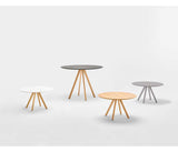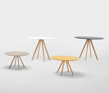 Mesa auxiliar con diseño contemporáneo y transversal para uso en espacios y contextos diversos. Las mesas STIKS combinan una elegante base central de cuatro radios de madera de roble natural con encimeras cuadradas o redondas disponibles en diferentes medidas, materiales y acabados. Mesa con base de roble de altura 40cm.