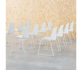 UNNIA es una extensa y versátil colección de asientos basada en un concepto único de combinación de colores y acabados. El diseño permite la combinación de asientos y respaldos de plástico o tapizados, en uno o dos colores, con una amplia gama de bases que permiten diferentes funcionalidades. Este concepto hace posible configurar infinitos diseños personalizados que se adaptan a las necesidades de contextos y estilos decorativos diversos. Silla con asiento y respaldo de polipropileno. Base de trineo de acero.