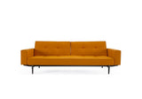 Sofá cama multifuncional diseñado por Per Weiss en 2004, con brazos y estructura metálica en negro. El concepto modular, permite crear una sala de estar versátil no estático.