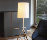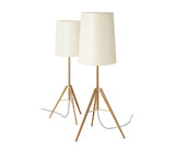 Lámparas pie suelo en dos medidas y alturas. Fabricadas en roble natural y barniz satinado. Se caracterizan por su gran dimensión y volumen.