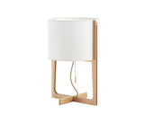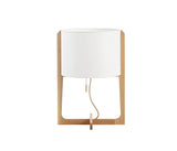 Necesita una bombilla E27 LED. Fabricada en madera de roble y pantalla de lino.