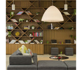 La lámpara Nelson Bell Bubble Pendant es parte de la colección Nelson Bubble Lamp, un grupo de lámparas con elegantes y esféricas siluetas. Esta luz extra larga llena el espacio con una luz tenue y suave que cuelga desde un plafón de techo de acero.