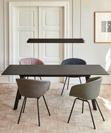 La lámpara PC Linear está disponible en blanco o negro. Su diseño lineal es perfecto para colgar sobre mesas de reuniones o de comedor.