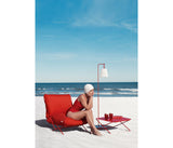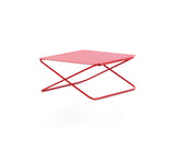 La colección Valentina Outdoor tiene un carácter desenfadado y casual, pero al mismo tiempo resulta elegante y colorista. Es la más genuina expresión del estilo Diabla. Su creadora, Alejandra Gandía-Blasco Lloret, se propuso diseñar un asiento empleando solamente dos cojines y el mínimo de elementos. Y de ahí nació no solo una familia de sofás sino también una tumbona y esta mesa auxiliar o de centro.