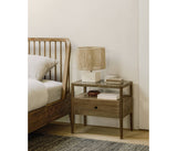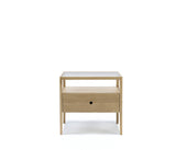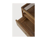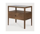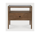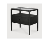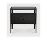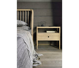 Con un único cajón, un espacio abierto con cristal y patas ligeramente afiladas, la mesita de noche Spindle es la compañera perfecta para la cama Spindle pero también es idónea como mueble auxiliar.