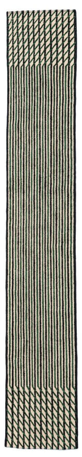 Este efecto emborronado se ha conseguido invirtiendo el sentido en el que se tejen tradicionalmente los kilims siendo por tanto, mucho más laboriosa su realización. Este cambio en el proceso de producción hace que las líneas queden desdibujadas, mezclando de forma desigual dos colores creando una alfombra envejecida y con reminiscencias del pasado.
