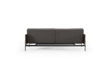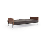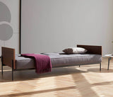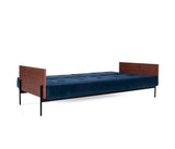 Sofá Cama Diseñado por Per Weiss en 2004, con estructura de acero cromado negro y brazos en chapa de nogal.