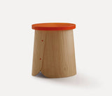 Tab son 2 banquetas con diferente altura y 4 mesas (resultado de combinar las dos alturas con los tres diámetros para las tapas). La base siempre es de chapa de castaño curvada y las tapas están disponibles en chapa de castaño y en un amplio abanico de lacados.