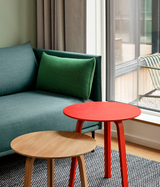 La mesa de café Bella de HAY es una mesa discreta que es lo suficientemente pequeña como para colocarla en cualquier lugar. La superficie ultra fina y las patas moldeadas de chapa de roble crean una mesa funcional y estéticamente ligera que se puede usar por separado o colocar en parejas o grupos.