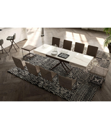 La mesa Box también presenta un ingenioso sistema de extensión que permite ampliar su superficie fácilmente. Este mecanismo es suave y silencioso, lo que facilita el ajuste de la mesa según las necesidades específicas. Ya sea para recibir a más invitados en una cena o para proporcionar un espacio de trabajo más amplio, esta mesa se adapta con facilidad y elegancia.