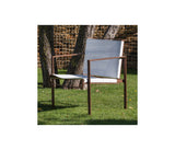 La butaca Yola posee una estructura de acero con pintura epoxi al horno de gran resistencia a la corrosión, por lo que es perfecta para exteriores. Está fabricada con telas de alta resistencia procedentes de velas recuperadas. Certificado ignífugo del tejido.