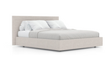 La cama se ofrece con tres tipos de construcción: con base suspendida, con la base tapizada hasta el suelo o con base contenedor. El cabecero también se ofrece como pieza independiente.