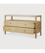 La colección Spindle se inspiró en la tradicional rueca de hilar. Las patas ligeramente en punta y los bordes redondeados añaden una calidad suave y sensual a esta hermosa colección de dormitorio. Esta cómoda es ideal tanto para el dormitorio como para espacios comerciales como una elegante pieza de almacenamiento.