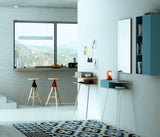 PASSING no es una pieza inerte, al contrario, su caja-contenedor sin ubicación predeterminada facilita, a criterio del usuario, presentaciones en ambos planos de la pieza, cambios de posición y variados usos que multiplican su funcionalidad. Una pieza juguetona de corte geométrico y minimalista para ambientes modernos.
