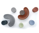 Combinando o contrastando entre sí los textiles disponibles y los 22 tintes de color del sutil zócalo de madera de fresno maciza, la plasticidad de los pufs Dividuals permite la creación de sets tan estéticos como funcionales.