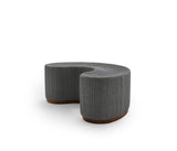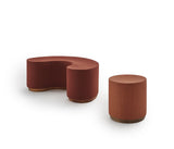 Cuando la orgánica silueta del puf curvo acoge al pequeño puf cilíndrico, la composición queda recogida y compacta, mientras que al separarse cada una de las piezas coloniza el espacio a sus anchas, dejando que el vacío defina sus escultóricas formas. Así, según se dispongan, el positivo y el negativo de la materia que los configura cobra un sentido u otro.