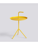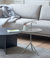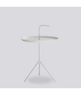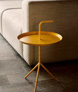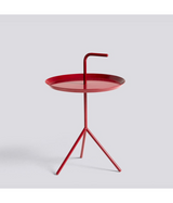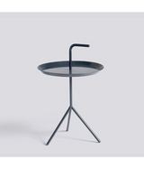 La mesa auxiliar portátil de Thomas Bentzen se llama acertadamente 'Don't Leave Me'. Abreviado como DLM, cuenta con un cómodo asa que permite llevar la mesa de metal de una habitación a otra. Aunque tiene una estructura ligera y portátil, las tres patas inclinadas proporcionan una gran estabilidad. Disponibles en dos tamaños, DLM y DLM XL son alternativas funcionales a las mesas de centro tradicionales. Adecuado para uso interior en la mayoría de los entornos domésticos u oficinas.