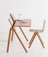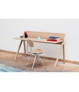 Compartiendo las mismas patas anguladas que el resto de la serie, la parte superior de la mesa del Escritorio de Madera Contrachapada Moldeada CPH190 presenta una división en la parte posterior de la mesa, creando un útil respaldo vertical para apoyar notas y libros abiertos, mientras que el resto sirve como espacio de trabajo. Esto tiene el doble beneficio de hacer que el escritorio sea más compacto y, al mismo tiempo, aumentar su funcionalidad. Ideal para usar en una oficina en casa o en un entorno de trabajo, está fabricado en roble con un lacado transparente.