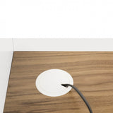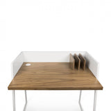 La estructura es metálica ( negro o blanca), mientras que la chapa de madera superior puede ser de roble o nogal.