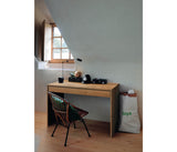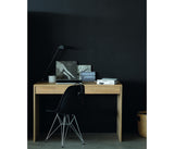 Agregue calidez a su oficina de casa con el escritorio Wave. Hecho de madera maciza, este escritorio cuenta con un cajón abierto.