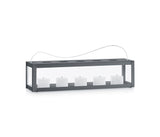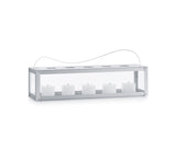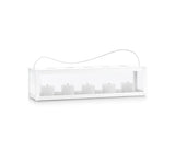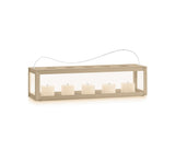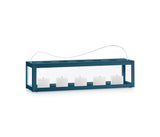 Este es el modelo horizontal que completa esta colección de faroles de exterior, que aparte está integrada por otros tres más de diseño cuadrado y otros tres verticales. Mide 15 x 60 x 15 cm (largo x ancho x alto) y dentro puedes meter hasta cinco velas. Con cada uno de los modelos de la colección Faroles podrás conseguir una ambientación muy diferente, desde iluminar una mesa hasta un camino o un espacio chill out. Son faroles portátiles y están hechos con un perfil de aluminio anodizado y caras de metacrilato blanco, transparente o de colores.