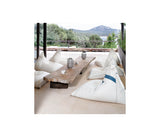 Puf de tejido de poliéster de una vela recuperada. Apto para uso en exteriores. Colores de relinga disponibles: blanco, negro, rojo, azul marino, visón, naranja, amarillo, azul. Certificado ignífugo del tejido.