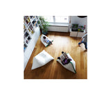 Estos pufs están hechos con velas génovas transformadas. Su especial diseño aplica la geometría de un tetraedro para darles respaldo, dando como resultado un sofá extraordinariamente estable y cómodo.