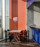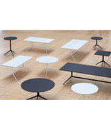 About A Table comparte la versatilidad general y el lenguaje de diseño como el resto de la familia. La mesa presenta el mismo marco con recubrimiento de polvo que muchas de las sillas de la serie, y las curvas orgánicas y los pies elevados transmiten una expresión de luz similar. Las mesas están disponibles con tableros redondos o rectangulares, con el tablero redondo descansando sobre un marco centrado, mientras que la versión rectangular tiene las patas colocadas en ambos extremos y tiene una construcción de barra transversal. About A Table está disponible en dos alturas y una amplia gama de dimensiones, lo que le permite crear una solución única para satisfacer sus necesidades.