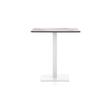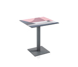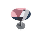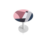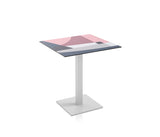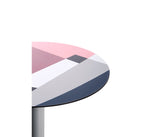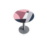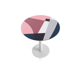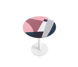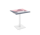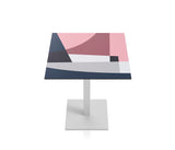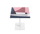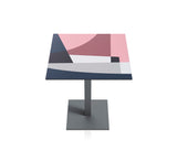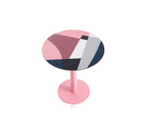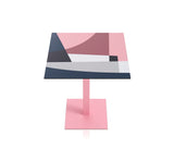 La llamativa y seductora gráfica geométrica que presenta el tablero de estas mesas de nuestra serie Mona es una creación del diseñador Jonathan Lawes. Aplicando su universo creativo personal, el británico ha creado dos versiones de coloridas gráficas para estas mesas monopata, que han sido adaptadas tanto a un formato de tablero redondo como cuadrado. En este modelo predominan los tonos rosa y, en el otro, los colores rojos.