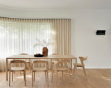 Con sus elegantes patas biseladas, el tablero parece flotar sin esfuerzo por encima de ellas. La mesa de comedor Oak Air es robusta y delgada, disfrazada de un diseño sencillo, limpio y minimalista. Inspirada en la ligereza experimentada con la cama del mismo nombre.