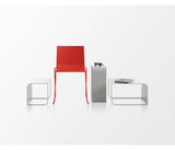 Las mesas de exterior auxiliares Arumi las puedes colocar en línea o una junto a otra. Tanto en un caso como en el otro, hacerlas coincidir por la zona que tiene menos superficie, a modo de patas, genera un añadido carácter gráfico al conjunto. Además, a la hora de realizar tu propia composición, piensa que también puedes ubicarlas en horizontal o en vertical. Están hechas en aluminio termolacado, así que no pesan mucho. Las podrás mover cuanto quieras con facilidad.