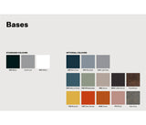La base plana esta fabricada con chapa de acero . La columna central elevable incorpora ajuste de altura mediante cilindro de elevación neumático. El tubo elevable de la columna va acabado en cromo mate. Opcionalmente se fabrica la versión de columna central con altura fija. La base y la columna se pueden acabar en todos los acabados metálicos del muestrario INCLASS.