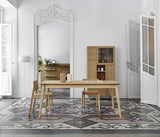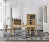 MYA es un programa de muebles de salón y aparadores con un estilo sencillo y un poco nórdico. Su diseño es un ejercicio de simplicidad formal. Un gesto configura el eje del diseño: un frente que se pliega 90 grados y conforma el tirador. Y según se posicione el tirador, la madera sigue su orientación.