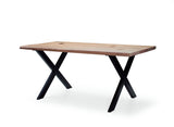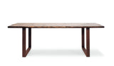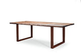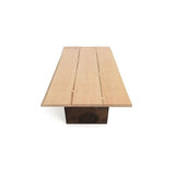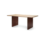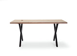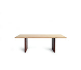 La mesa May combina el estilo arquitectónico con la crudeza de los elementos, con los pies de acero y la tapa de madera basta de haya maciza. Puede realizarse a medida.