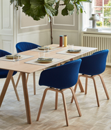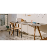 Como parte de la gama Copenhague diseñada por Ronan y Erwan Bouroullec, la CPH30 comparte las mismas patas en ángulo características y la fuerte identidad que son consistentes con el resto de la colección, pero su tablero contrastante lo distingue. El marco de la mesa viene en una variedad de tamaños, tipos de madera y acabados, y los tableros se ofrecen en diferentes materiales y acabados. La versatilidad y el diseño ordenado del CPH30 lo hacen ideal para usar como escritorio, mesa de conferencias o mesa de comedor en un contexto de oficina o en un entorno privado.