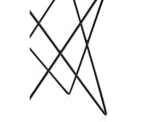Esta mesa redonda con una base de sinuoso trazo, que recuerda a la estela de una órbita, pertenece a nuestra colección D12. Una serie ideada por el arquitecto Marià Castelló a partir de sencillos trazos que parecen meras estructuras pero que, sin embargo, desempeñan plenas funciones como estantes, percheros o mesas auxiliares. Están elaborados con una fina varilla de acero de 12mm de diámetro, dato técnico del que la colección toma su nombre.