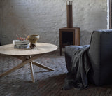 La mesa de centro Mikado, diseñada por Alain van Havre, no es simplemente una versión más pequeña de la mesa de comedor Mikado. Es una reinterpretación completa de su diseño más amplio y un estudio de equilibrio y simetría.