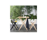 La colección de mesas Dinghy está diseñada con el sistema de estructura "Plywood Collection". Incorpora un gancho para el bolso o la ropa. Al ser plegable es ideal para estancias reducidas u ocasionales.
