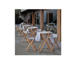 La mesa Dinghy C posee una estructura articulada fabricada con madera laminada contrachapada fenólica de abedul y barras cilíndricas de haya. Está barnizada con barniz para exteriores y toda la tornillería es de acero inoxidable. El sobre está hecho de resina con fibra de vidrio con tela de vela recuperada en su interior.