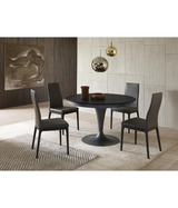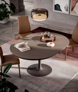 Eclipse y Eclipse Legno con un diseño integral para una mesa minimalista, sobria y elegante. La base central cónica libera el espacio debajo de la parte superior para una mayor comodidad. Una extensión oculta en el interior le permite alojar hasta 8 personas.